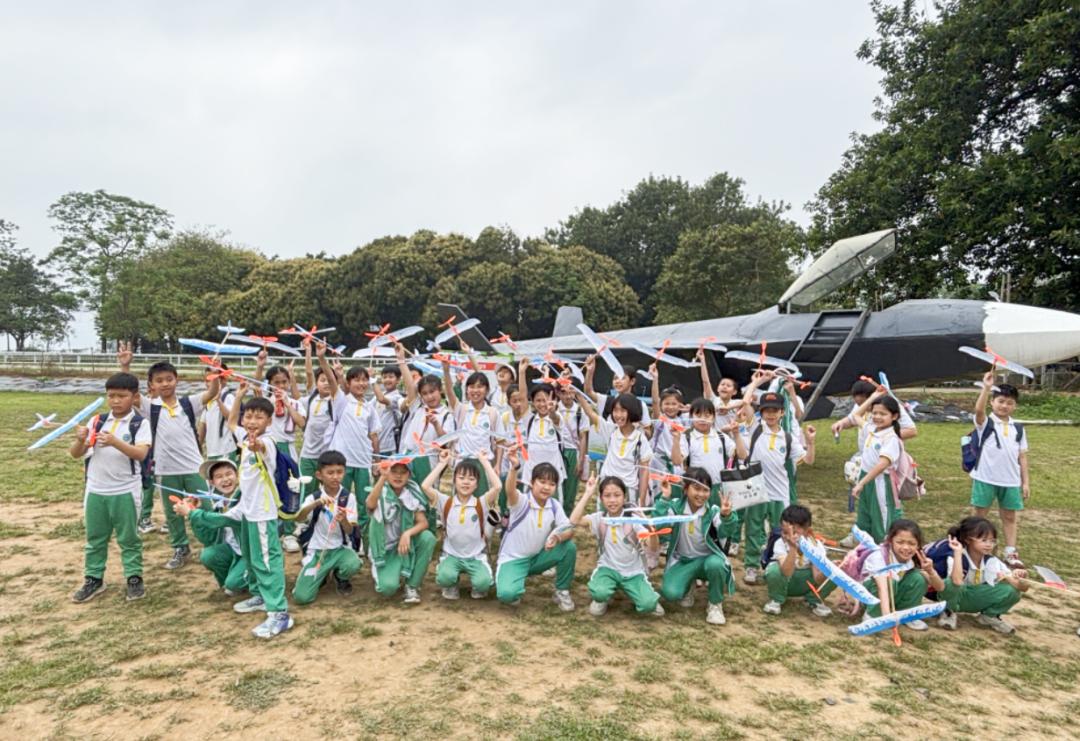 不久前,肇庆市汇星小学金利校区(金利镇中心小学)的约900名师生来到砚洲岛,开展一场充满趣味与收获的研学之旅。机库探秘、制作飞机模型、观看航空表演,系列研学项目让孩子们大开眼界,零距离触摸航空奥秘,探索蓝天的种子在心中生根。