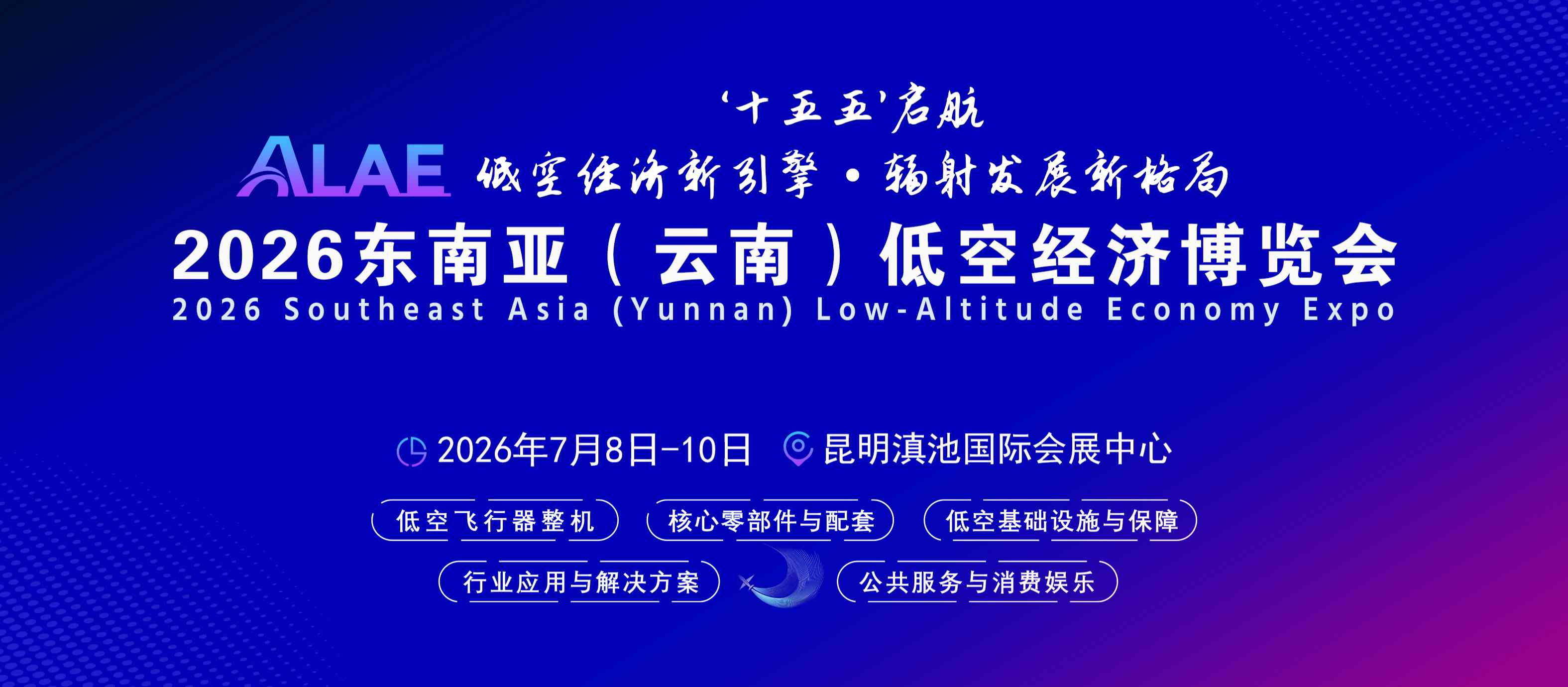 2026年7月8日—10日,东南亚(云南)低空经济博览会将在昆明隆重举办。 这场以“‘十五五’启航:低空经济新引擎,辐射发展新格局”为主题的国际盛会,是我国与南亚东南亚地区在低空经济领域深化交流合作的重要窗口。