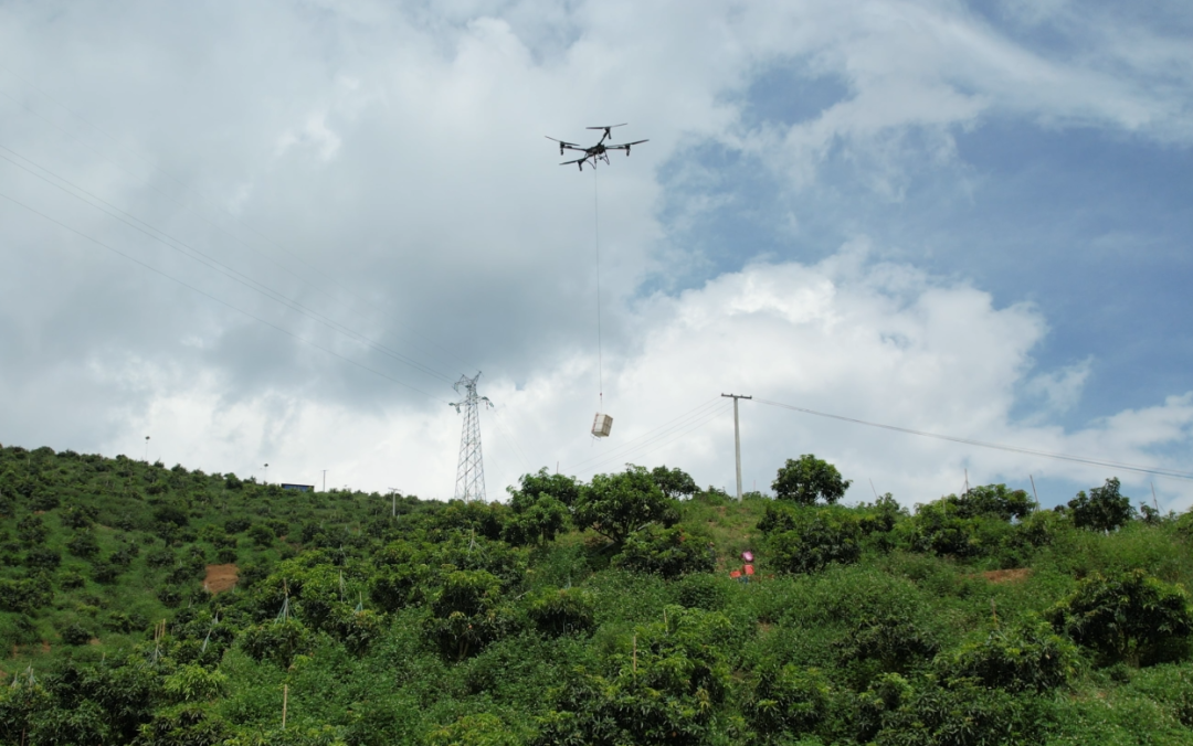 无人机吊运芒果高效便捷。(弥勒市委组织部供图)