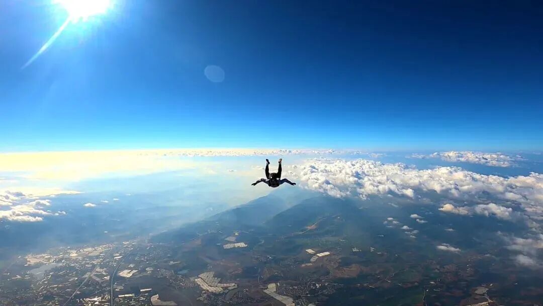 游客到弥勒市体验高空跳伞。(弥勒市委组织部供图)